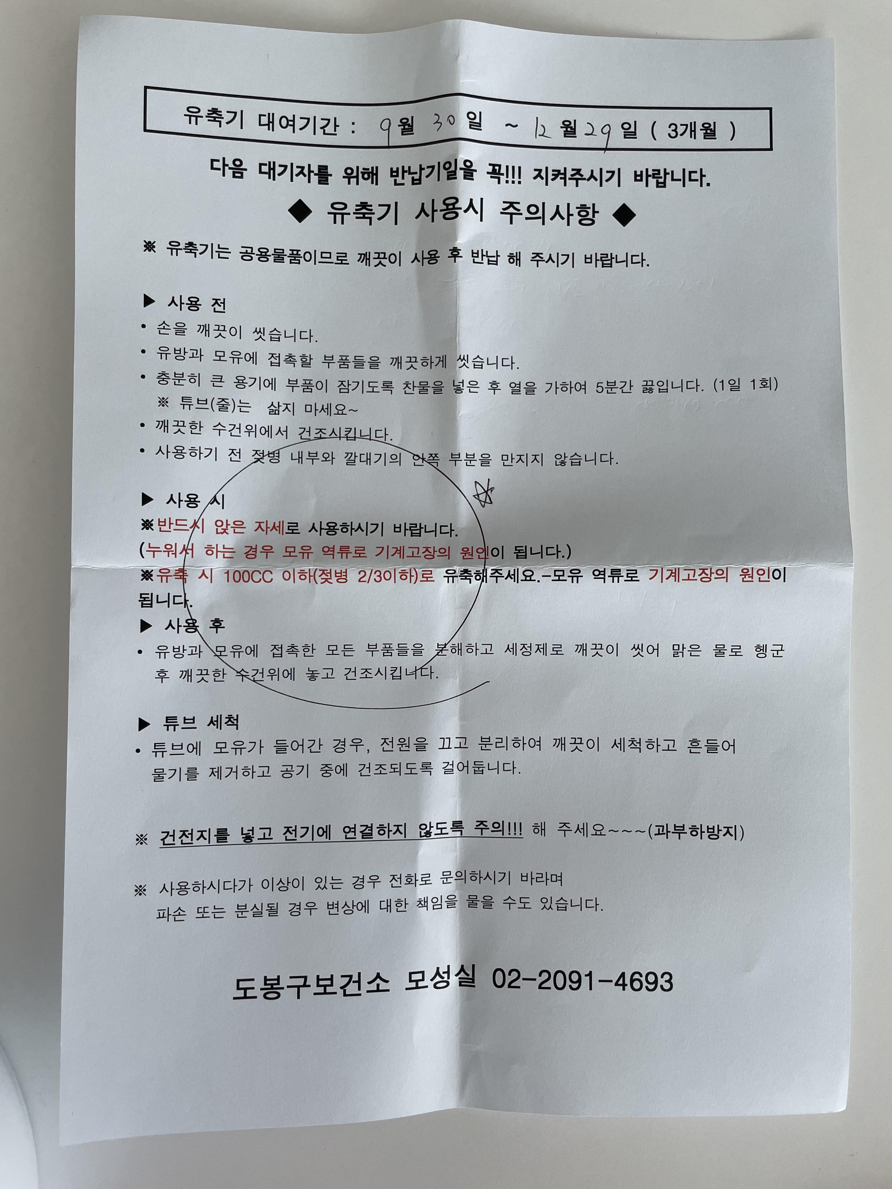 그래서 보건소에서 유축기 대여관련 안내문을 봤다.